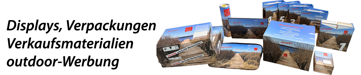 Neben klassischen Druckerzeugnissen bieten wir auch Schilder, Displays und Fahnen.