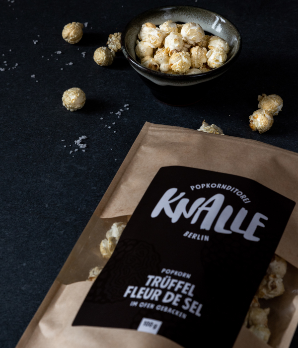 Knalle ist Deutschlands erste Popkornditorei. In der Berliner Manufaktur verwandelt das Unternehmen Mais in außergewöhnliche Kreationen von Butterkaramell Tahiti-Vanille über Trüffel Fleur de Sel bis Extrakaramell Chipotle Chili Zitrone. Jede Kreation wird mit hochwertigen Zutaten, viel Liebe zum Detail und einem klaren Anspruch an Qualität hergestellt.