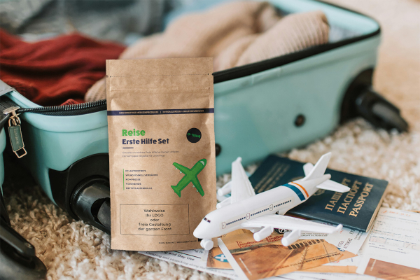 Ein Highlight ist das Reise-Erste-Hilfe-Set im „Doypack“ aus beschichtetem Kraftpapier oder im robusten „Mediboy“. Es beinhaltet wichtige Erste-Hilfe-Basics und viel Fläche für individuelle Markenbotschaften.