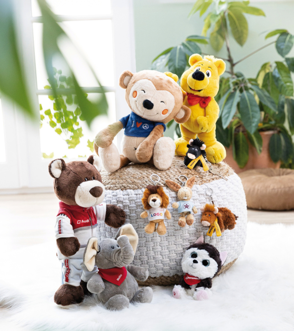 Für kurzfristige Aktionen bietet der Markenlieferant zudem ein umfangreiches Sortiment lagergeführter Kuscheltiere – vom Schlüsselring-Hund bis zum klassischen Bären. Mit bedruckbaren Accessoires wie T-Shirts oder Schals lassen sich Logos je nach Wunsch dezent oder auffällig integrieren. Ob Messe, Promotion oder Social Media – die hochwertigen Plüschprodukte schaffen Nähe, stärken die Markenbindung und bleiben dank ihrer Qualität positiv im Gedächtnis.