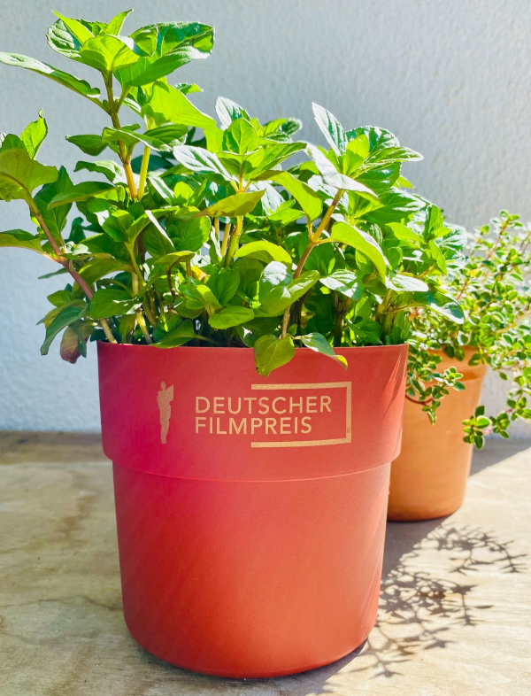 So wurden z.B. aus dem roten Teppich des Deutschen Filmpreises in verschiedenen Verarbeitungsschritten Blumentöpfe hergestellt, und der anthrazitfarbene Teppich der HAPTICA live ’25 wurde in Zusammenarbeit mit Schneider Schreibgeräte zu einzigartigen Stiften.