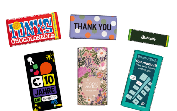 Als aufmerksamkeitsstarkes Produkthighlight präsentiert Tony’s Chocolonely personalisierte Schokolade. Die 180-g-Tafeln, 50-g-Riegel sowie saisonale Ostereierboxen lassen sich individuell mit Logo oder Branding gestalten. Ob für Events, Mitarbeitergeschenke, Firmenjubiläen oder als sympathisches Giveaway auf Messen: Die personalisierten Schokoladen verbinden Genuss mit Haltung und transportieren Markenbotschaften auf besonders nachhaltige Weise.