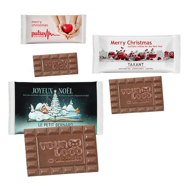 Bei den Schoko-Sondermotiv-Tafeln werden Logos oder Botschaften individuell in feinste Choco Company-Vollmilchschokolade gegossen. Die einzigartigen Tafeln sind in den Größen M (ca. 25 g), L (ca. 40 g) oder XL (ca. 60 g) erhältlich und werden einzeln im bedruckbaren Flowpack, entweder in konventionelle Folie (glänzend oder matt kaschiert) oder in Papier verpackt.
