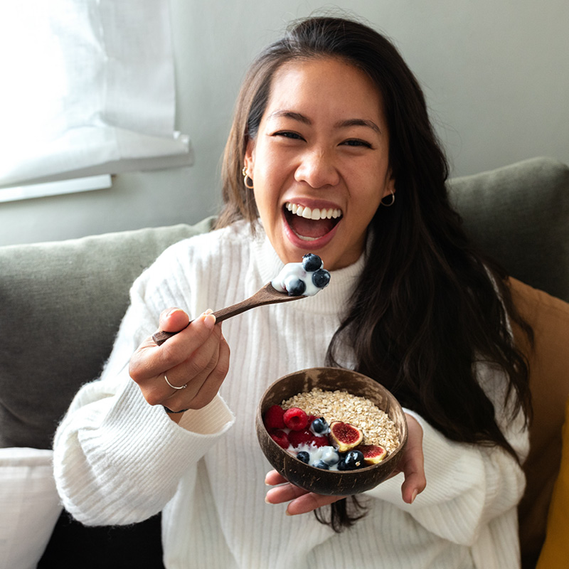 Schon beim Zubereiten steigt die Laune: Frisches Obst schneiden, Sojajoghurt oder Quark anrühren, Nüsse und Saaten dazu –fertig ist die leckere Frühstücks-Bowl. Dabei sieht das Ergebnis nicht nur ansprechend aus, sondern sorgt mit einer Extraportion Nährstoffe für einen rundum frischen Start in den Tag.