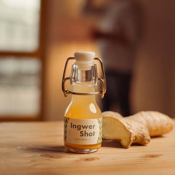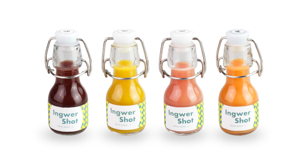 Die aromatischen Shots werden in Deutschland mit großer Sorgfalt und überwiegend regionalen Zutaten hergestellt und anschließend in stylishe, wiederverwendbare Bügelflaschen abgefüllt. Die Etiketten lassen sich individuell nach Kundenwunsch gestalten – fertig ist das gesunde Giveaway auf Messen, Promotions und Events oder das wirkungsvolle Kundenpräsent.