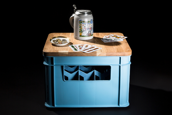 Einen Lieblingsplatz bei der Zielgruppe sichern sich Marken z.B. mit dem „Brettl“ aus geölter Eiche, das aus einem schnöden Bierkasten im Handumdrehen ein schickes Möbelstück macht. Ob als Sitz, Tisch oder Bank – das minimalistische Design überzeugt mit maximal sinnvoller Nutzung inkl. integriertem Öffner aus Metall.