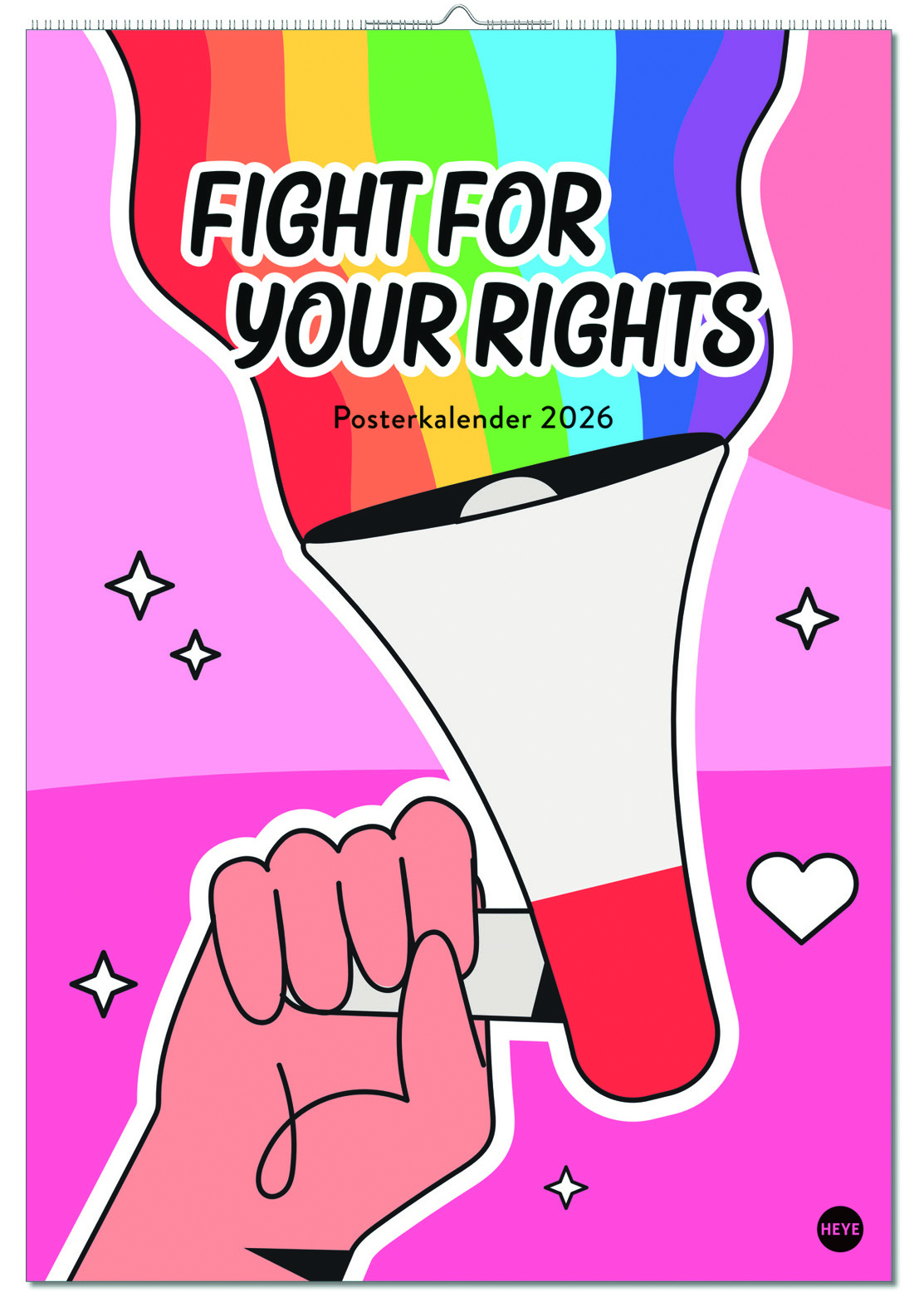 Bei Heye erscheint der Posterkalender „Fight for Your Rights“ im Format 37 x 53,5 cm, dessen plakative Motive unter anderem Statements zu aktuellen Themen wie LGBTQIA+ und Inklusion zeigen.