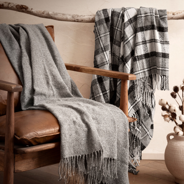 Wer es etwas fransiger mag, ist mit der Decke „Mishka“ gut beraten. Auch für dieses in der Ukraine hergestellte Modell wurden ausschließlich recycelte Materialien verwendet. Die Decke ist 150 × 200 cm groß und hat eine Stoffqualität von ca. 285 g/m².